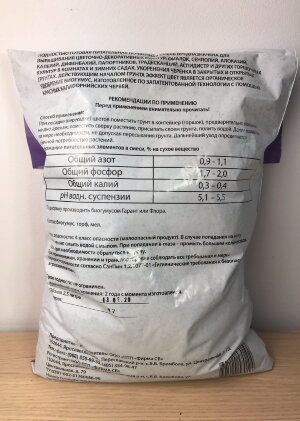 Объем: 3 л Состав: N (мг/л) 73 P2О5 (мг/л) 150 К2О2 (мг/л) 200 Mg (мг/л) 75 Микроэлементы Fe 0.8-2.0, Zn 0.2-3.0, Cu 3.0-5.0, Mn 8.0-40.0, Mo 0.1-0.4, B 0.4-1.6 Ph 5.5-6.5. Органическое вещество - 30% Производитель: ОАО "Буйский Химический Завод"