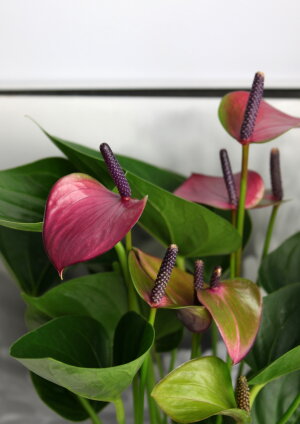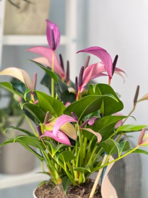 Антуриум фиолетовый купить с доставкой по Москве и области. Мы покажем фото или видео, доставим до двери квартиры или офиса, дадим рекомендации.