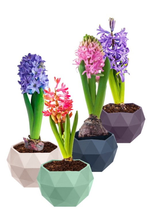 Пророщенная луковица гиацинта в цветном пластиковом горшочке Топаз