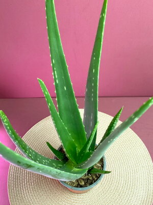 Алоэ Вера - комнатное растение, известное своими полезными свойствами. Сок листьев содержит много веществ, используемых в косметологии. Отличается светло-зелёными длинными листьями, может иметь крапчатый рисунок, внешняя сторона всегда гладкая, без шипов.