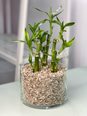 Бамбук лаки - это вовсе не еда для панд! Это драцена Сандерса, сформированная в зелёный побег. Вы можете держать его в воде, а можете посадить в землю, тогда у вас вырастет целое дерево.