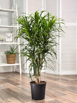 - Размеры - Высота общая: - 90 см - Диаметр горшка: - 19 см - Высота растения от горшка: - 70 см - Полив: - Умеренный по мере просыхания 2/3 почвы. Можно производить двумя способами - верхним или донным. В случае донного полива важно, чтобы растение не находилось постоянно в воде. При поливе верхним способом, избыточную влагу из поддона следует своевременно удалять. - Освещение: - Рассеянное без прямых солнечных лучей. Для зелёных видов подойдет комнатное или офисное освещение, способны расти при скудной яркости и искусственных источниках. Для пёстрых полосатых требуется более яркая подсветка. - Информация - Животные и дети: - Безопасно для детей и животных - Примечание: - Продается в пластиковом транспортном горшке