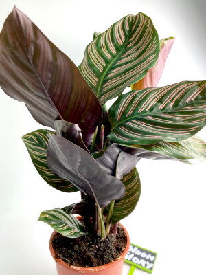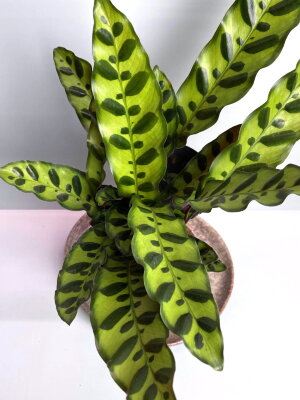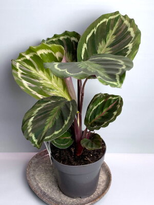 Полив: Требуют регулярного и равномерного полива. Проверяйте верхний слой на влажность, он должен быть просушен на 1-2 см. Если почва сверху еще сырая, повремените с поливом. Используйте комнатную температуру воды. Холодная вода может вызвать стресс у растения. Не допускайте пересушивания и переувлажнения почвы. Избыточная влага может привести к гниению корней, пожелтению краев листьев. Старайтесь избегать попадания воды на листву Калатеи. Это может спровоцировать появление пятен и развитие грибковых болезней. Поливайте равномерно в один и тот же интервал, избегая экстремальных колебаний влажности.