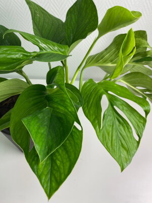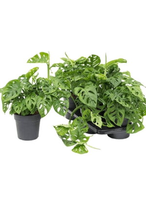 Монстера - это вечнозеленое растение из семейства Ароидные, включает в себя большое количество разных видов, из которых самые известные - это Деликатесная или Делициоза, которая известна съедобными плодами; Монстера Адансона или Обликва, Пиннатипартита и другие. Основное отличие разных видов заключается в размере листьев, глубине и форме перфорации, а также максимальном росте и длине стеблей. Самым крупным представителем Монстеры является Монстера Делициоза - у нее сердцевидные листья с выраженной перфорацией. Она нужна для того, чтобы солнечный свет проникал к нижним ярусам листьев и осадки не повреждали крупную листовую пластину. Монстера представляет собой лиану, по мере роста на стеблях появляются длинные воздушные корни, которые служат для питания растения. Для роста и развития необходима опора, к которой нужно фиксировать длинные плети.