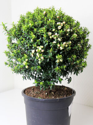 Мирт это вечнозелёное растение которое часто можно встретить в виде штамба с округлой кроной или тремя кронами на стволе. При прикосновении к листве можно почувствовать легкий аромат эфирных масел.