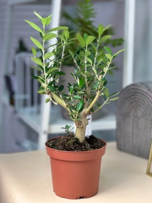 Зеленовато-серый ствол и пышная крона из удлиненных листьев светло-зелёного, будто припылённого оттенка, делают Оливу акцентным растением. Её образ узнаваем и неповторим, способен добавить дух Средиземноморья любому пространству. Оливковое дерево в домашних условиях может достигать 1,5-2 метра в высоту.