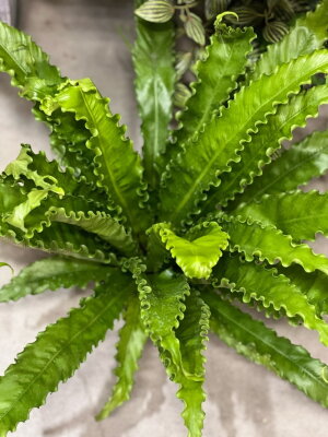 Растения первого подвида - отличаются простыми нерассеченными листьями, которые поднимаются из воронкообразной розетки. Благодаря данной особенности их называют Папоротники птичьего гнезда.