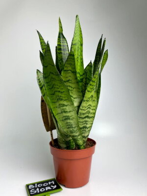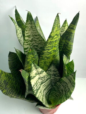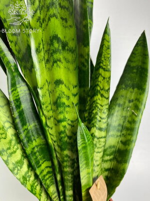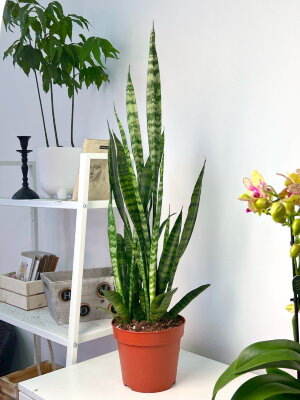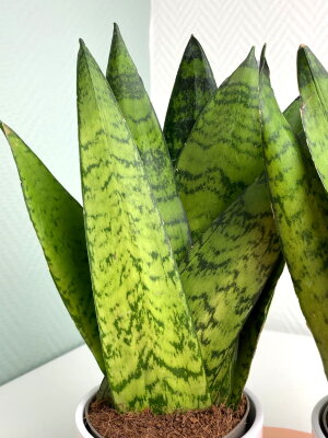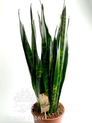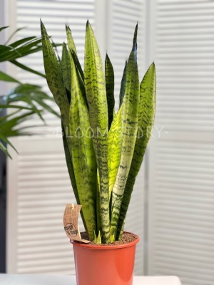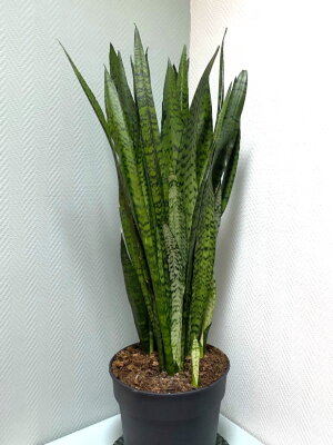 Сансевиерия Зейланика отлично приспособленный к комнатным условиям ярко-зелёный вид, неприхотливый к освещению и поливу. Длинные языки растения с волнообразным узором не займут много места. Вырастает до 80-100 см от горшка.