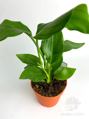 Крупные кожистые листья копьевидной формы, похожие на листья банана, достигают 30-38 см в длину.
