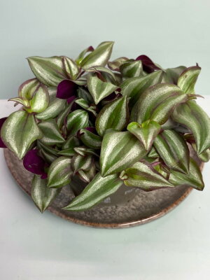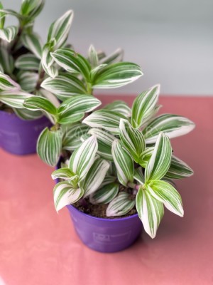 Традесканция - популярное ампельное растение с яркими полосатыми листьями различных оттенков от салатовых до пурпурных. Очищает и освежает воздух, гипоаллергенное и нетоксичное для детей и домашних питомцев.