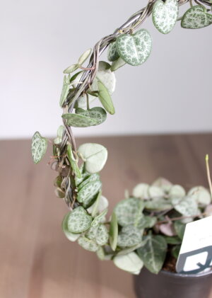 Церопегия Вуда — наиболее адаптированный для выращивания в домашней культуре вид. Это растение никого не оставит равнодушным, идеально сочетая в себе нежность и экстравагантность. Сердцевидные листики, редко расположенные на тонких жестких стеблях напоминают бусинки на нитках. «Цепочка сердечек» - так часто называют это диковинное растение. Наиболее эффектно Церопегия выглядит, если выращивать ее как ампельное растение, позволяя ниточкам сердечек свободно струиться вниз с края кашпо. В качестве альтернативного варианта, можно придать растению форму пирамиды, обвив длинные стебли вокруг конусовидной опоры.