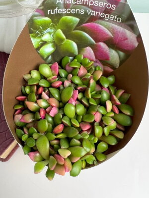 Самые распространенные виды анакампсероса - санрайз и рубра, они имеют яркую розовую и бордовую расцветку.